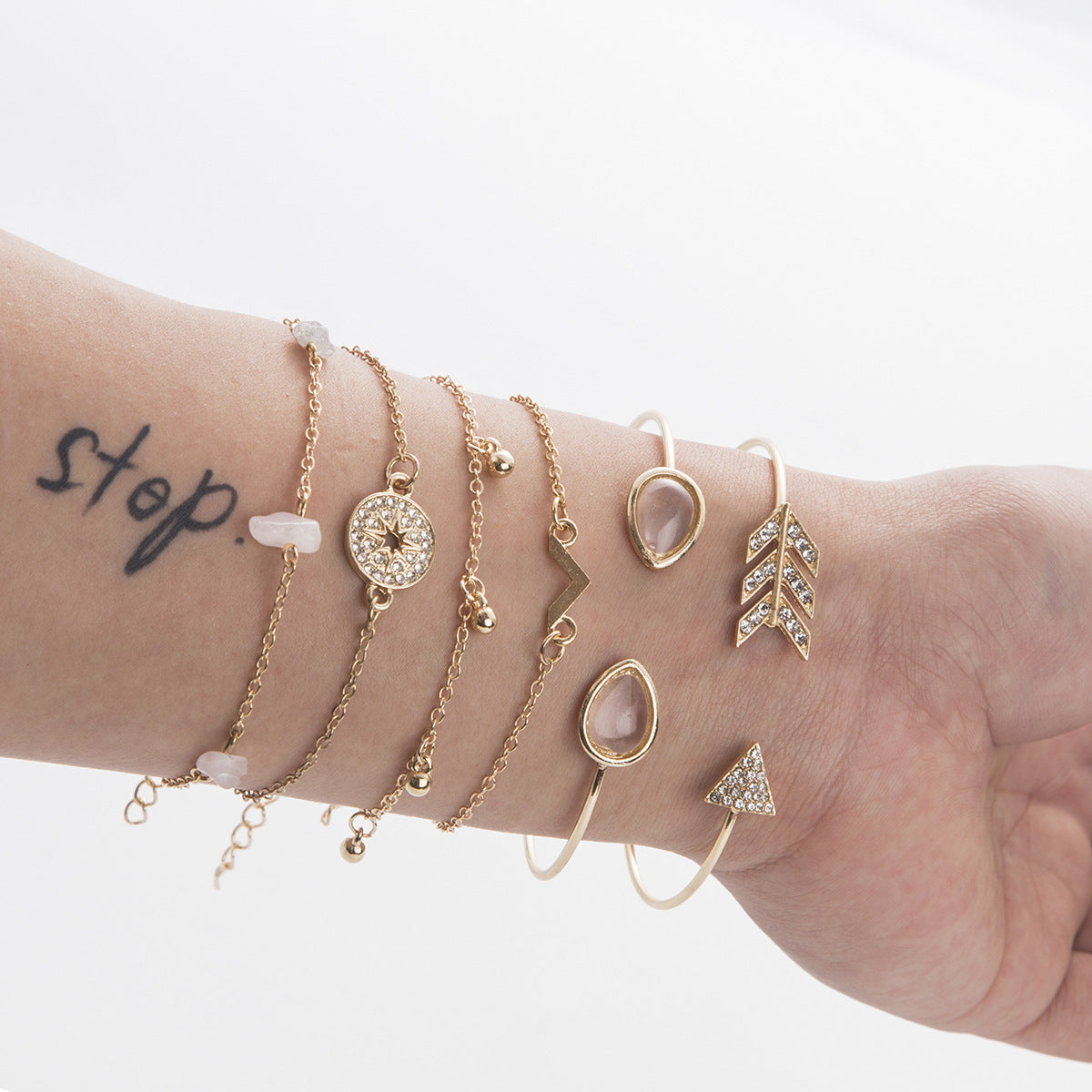 Broken Turquoise V-shaped Bracelet Six-piece Set