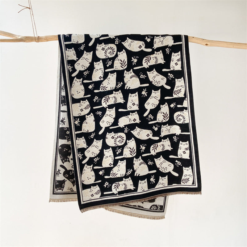 Cream Sweet Cat Artificial Cashmere Scarf Women's Autumn And Winter Korean Style