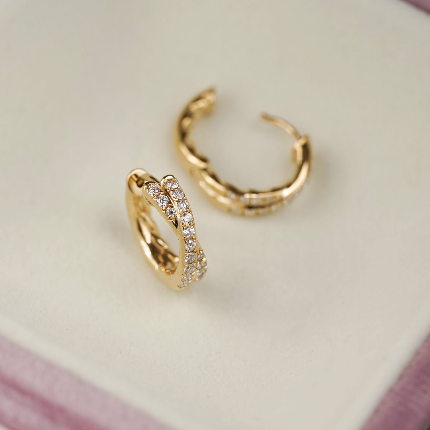 Cross Double Row Diamond Version Exquisite Commuter Style Twist Earrings