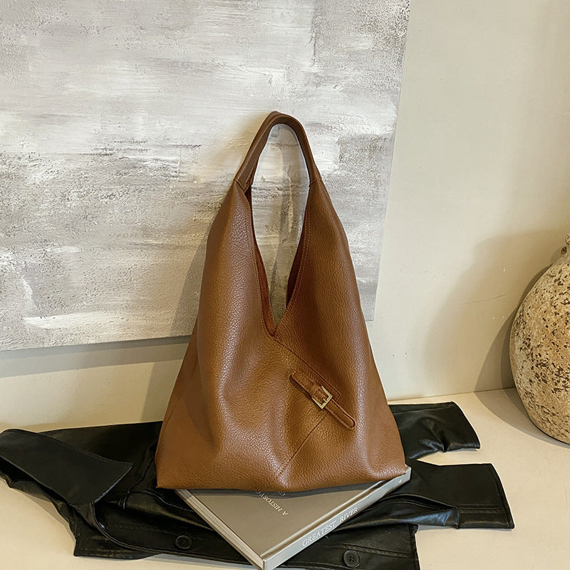 Fashionable Solid Color Soft Leather Underarm Bag Simple Large Capacity