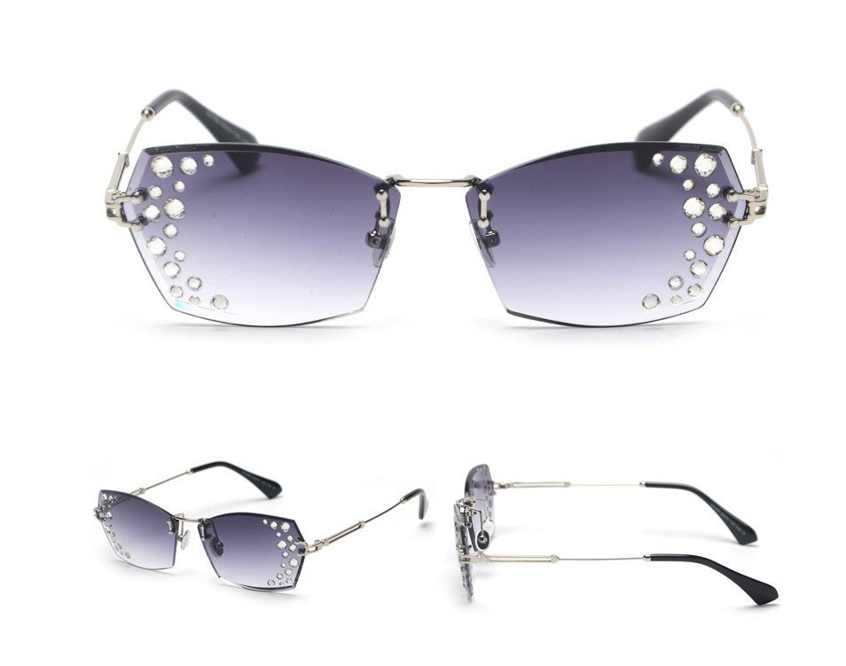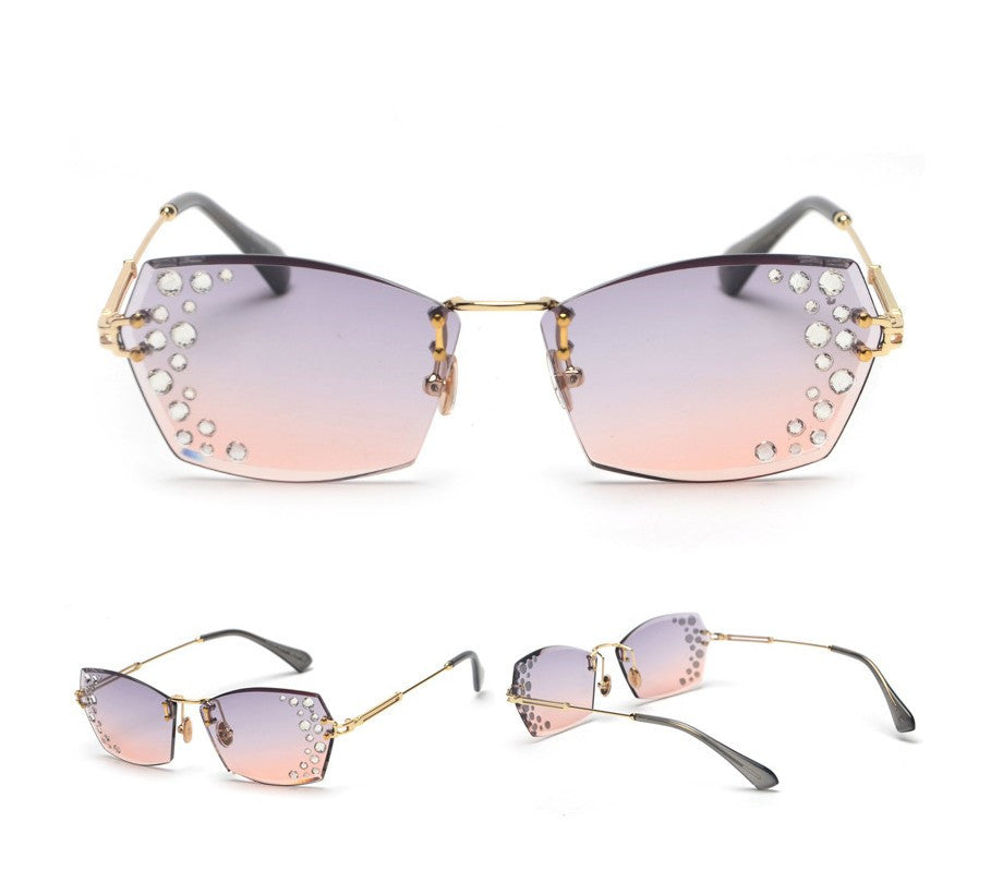 Frameless cut-edge sunglasses with mirror-set flash diamonds