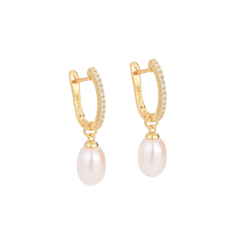 French Style S925 Sterling Silver Natural Pearl Earrings
