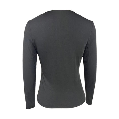 Ladies' Fashionable Solid Color Premium Cross V-neck Sexy Elegant Long Sleeved T-shirt Top