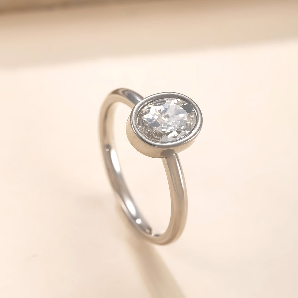 Stainless Steel Ornament Oval Zircon Simple Advanced Titanium Steel Ring