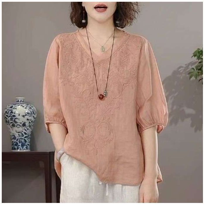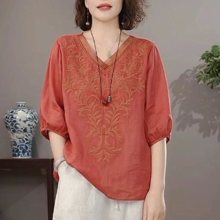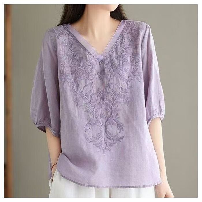 Summer Retro Style Loose Short Sleeve Shirt Ladies