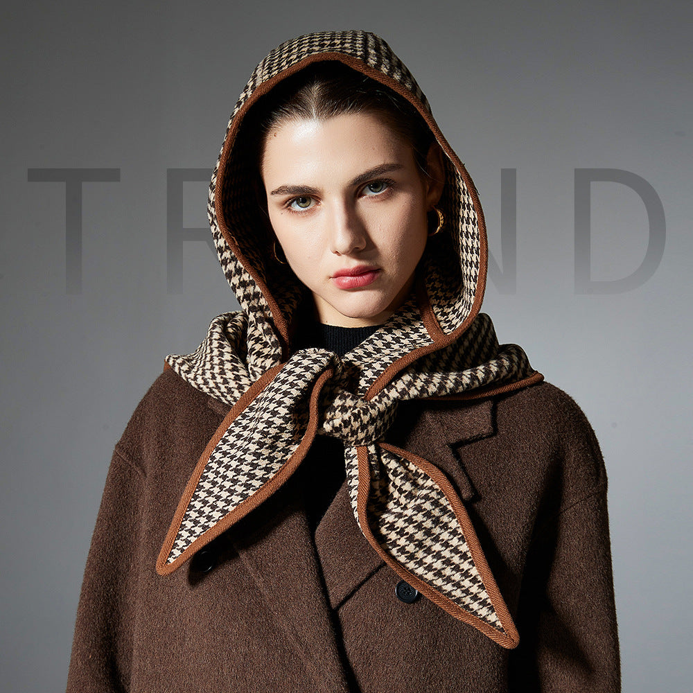 Women's Brown Houndstooth Small Cape And Shawl