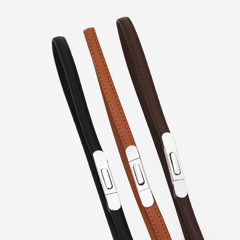 Women's Thin Genuine Leather Dress Simple Suit Coat Waist Belt