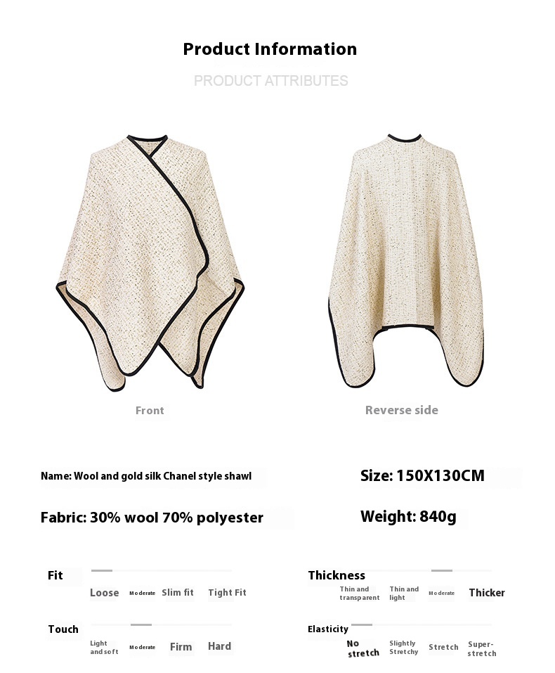 Color: wool gold silk classic style shawl
